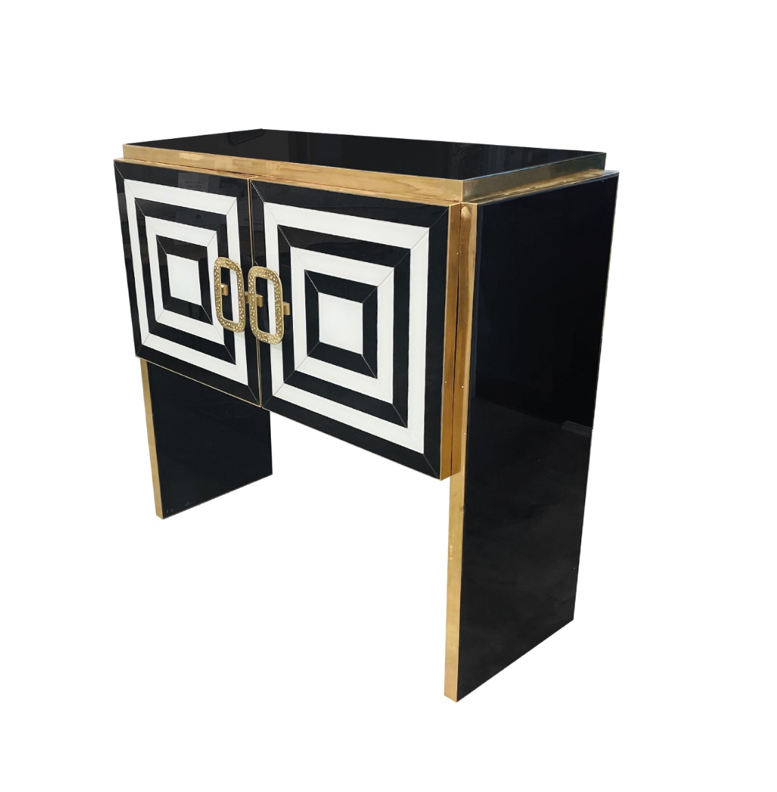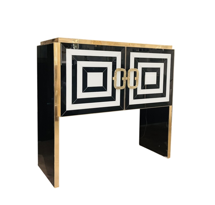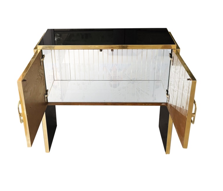 This illuminated Murano glass sideboard, now held at Authentic Provence, reflects that evolution beautifully. Executed in a striking black-and-white palette, the cabinet features hand-blown and mirrored Murano glass panels, sculptural polished brass handles, and a warm walnut interior enhanced by integrated lighting. Both functional and expressive, the piece bridges historic Venetian artistry with a refined Mid-Century modern sensibility, emblematic of the curated European works presented at Authentic Provence.